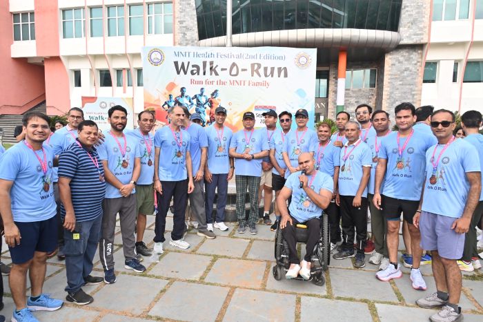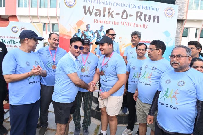 MNIT Jaipur and its Alumni Association, organized Walk-O-Run on September 28, 2025, to promote physical fitness and a healthier lifestyle. The event was inaugurated by Prof. N.P. Padhy, Director of MNIT Jaipur, and Prof. A.P.S. Rathore, Senior Most Faculty Alumni, who flagged off the run. The 5 km Walk-O-Run commenced at 6:15 AM and concluded at 7:30 AM, witnessing enthusiastic participation from over 1100 individuals, including faculty members, alumni, staff, and students. Distinguished participants included Prof. Dilip Sharma (Dean, International & Alumni Affairs), Prof. Rakesh Jain (Placement In-Charge), Dr. Ashish Dutt Sharma (President, MNITJAA), Dr. Pawan Kalla (Associate Dean, Alumni Affairs), Mahendra Meena (General Secretary, MNITJAA), Shri K.K. Poonia, Shri Ranawat, and other MNITJAA officials. Alumni from Delhi NCR, Alwar, Bharatpur, and Australia also joined the event. Prof. Padhy congratulated all participants for their enthusiastic spirit. The event concluded with medals and refreshments, celebrating resilience, health and togetherness.